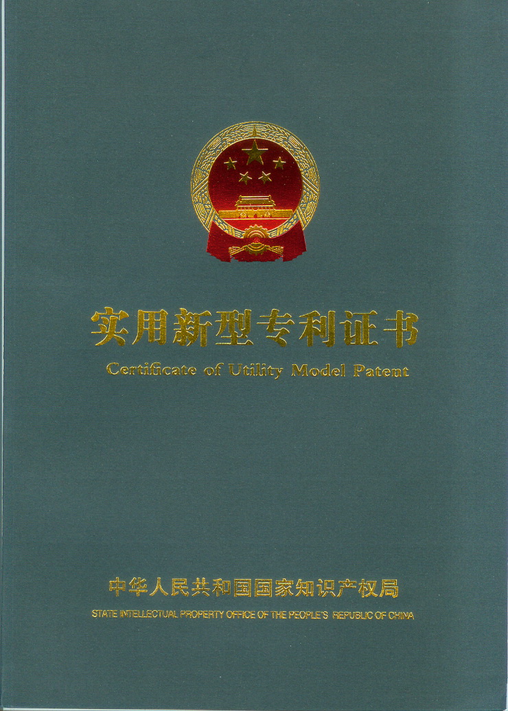Chinese utility model patent No. ZL 2010 2 0679360.6,Certificate No.:1849071